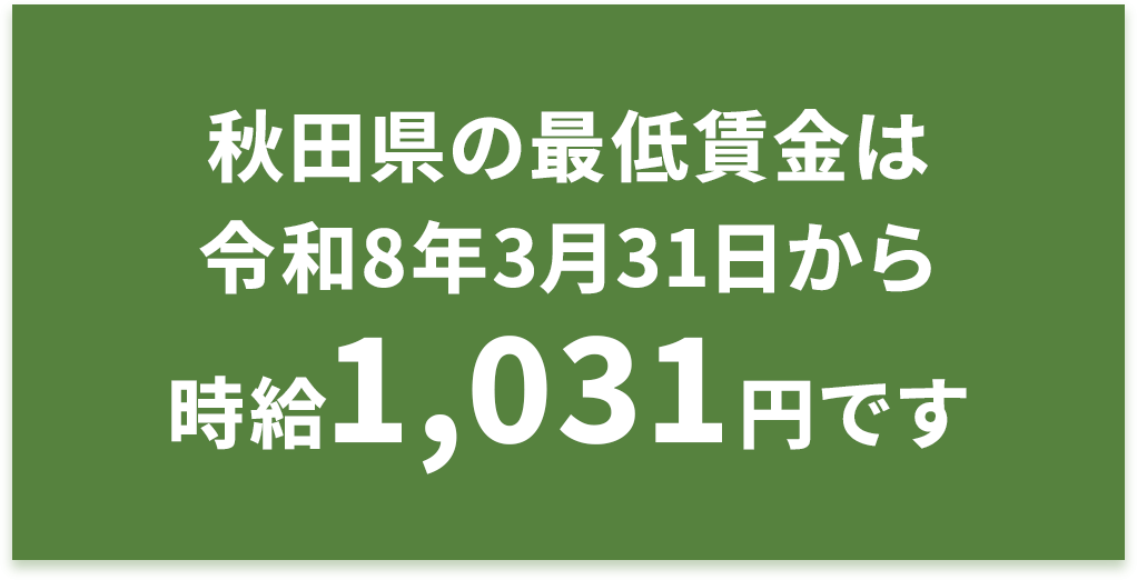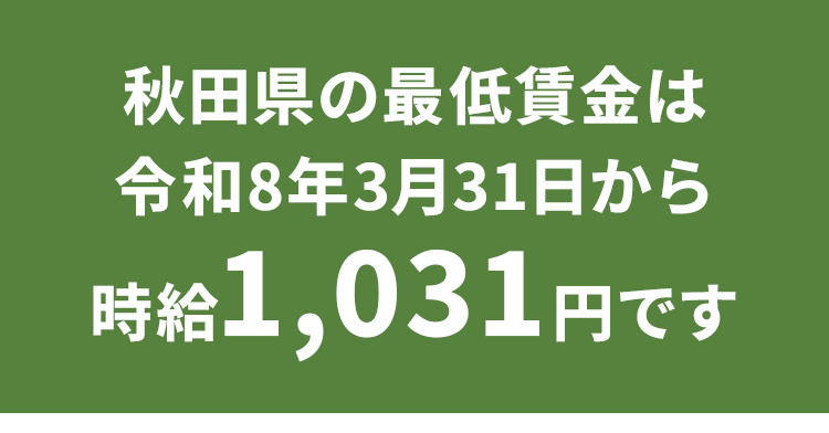 - 秋田県の最低賃金は令和8年3月31日から時給1,031円です