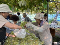 8月21日(木)、8月24日(日)両日共に、8時前より30名を超える行列が出来て、9時頃には、完売になる程の大盛況でした。ぶどう狩りも体験出来て、満足そうでした。