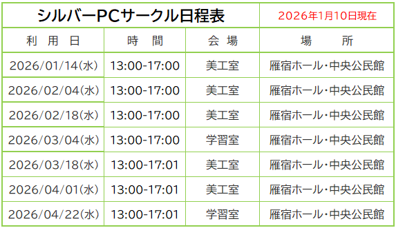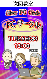 PCサークル運営 代表:東岡 稔 事務局長:田村 彰 会計:東岡 稔