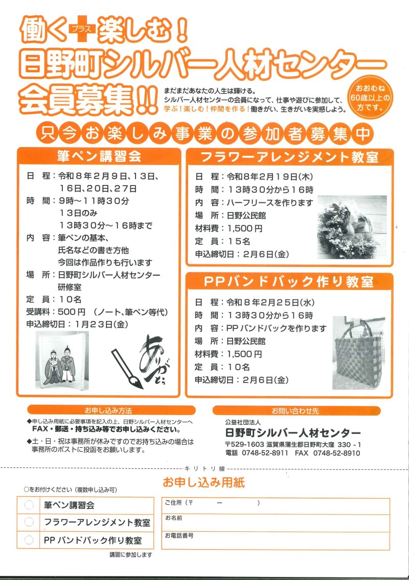 | 公益社団法人 ☏0748-52-8911 8:30~17:15 日野町シルバー人材センター |