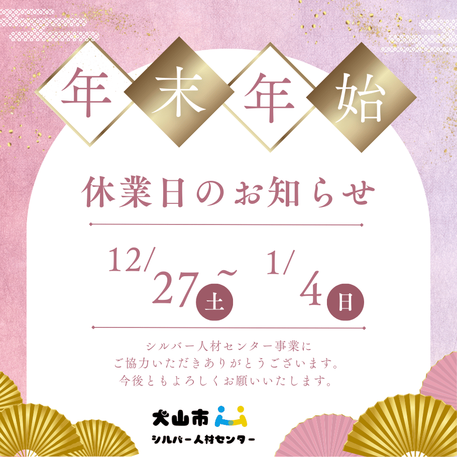 - 重要 12/27(土)~1/4(日)は年末年始休業とさせていただきます。