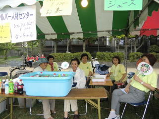 | 今年のまつばら市民まつりは、両日とも快晴に恵まれ、絶好の祭り日和となりました。 当センターでは、一日目に着付け同好会のご協力のもと、「飲み物販売」を行いました。 二日目には、手芸同好会にご協力いただき、「手芸作品販売」を行いました。 |