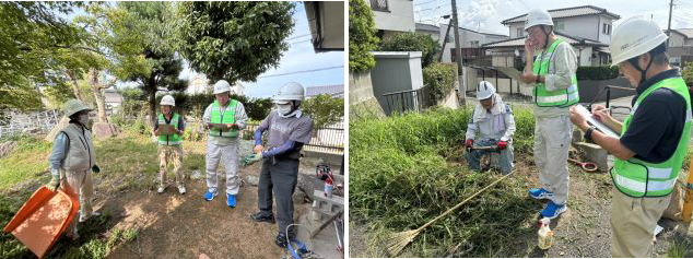 会員の就業場所(今回は筒井の植木剪定作業・下大利の広場除草作業)」にて、巡回指導と安全確認を行いました。