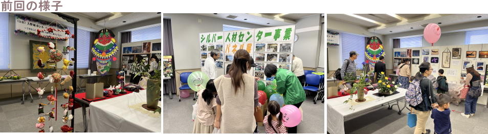 会員の作品展示や、体験コーナー、シルバー人材センター事業パネル展などを行う予定です。展示作品を募集しています!