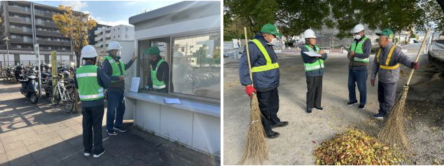 会員の就業場所(今回は下大利4丁目草刈作業・大文字公園ごみ回収作業)」にて、巡回指導と安全確認を行いました。