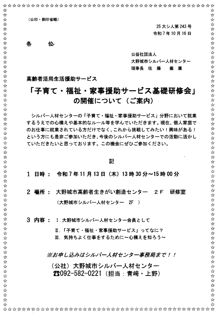 「子育て・福祉・家事援助サーヴィス基礎研修会」開催