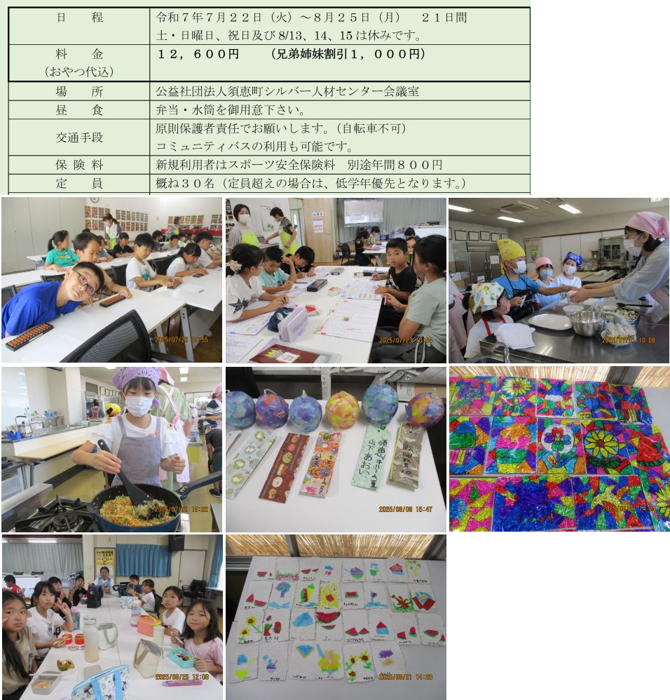 子どもの居場所づくり事業小学生夏休み一時預りサービス