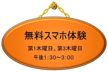 なお、本講座はスマホの無料体験講座ですので、パソコン無料体験講座とお間違いの内容よろしくお願いします。 ・すでにスマホをお持ちの方で、スマホの操作方法を確認したい方、習熟したい方には、iPhone初級講座、Android初級講座(らくらく、BASIO,Android一般)を用意しています。2日コース5,000円でマンツーマン指導を行います。ご利用ください。iPhone